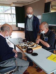 | (クラブ紹介) 囲碁は脳のトレーニングに最適で誰にでもできるゲームスポーツです。 囲碁界には96歳の現役プロ棋士が活躍されています。 当クラブには最高アマ6段からの素晴らしいOBや現役部員が初心者にも懇切 丁寧に指導してくれますので安心です。 強くても弱くても楽しめます。 生涯現役を目指す貴方! 当クラブに是非、遊びに来てください。 |